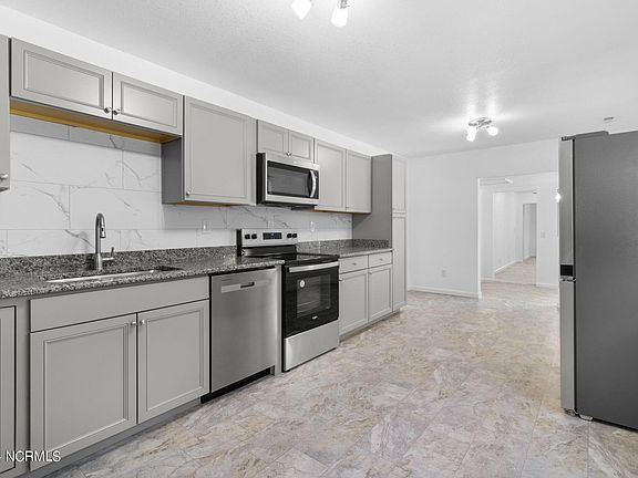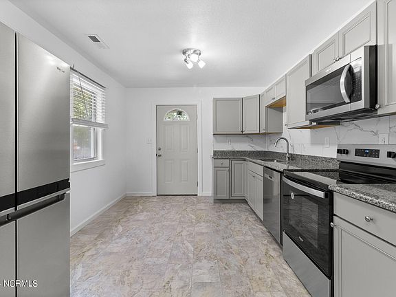 Like new home in Elizabeth City. All new drywall, paint, flooring, kitchen (stainless appliances), bathrooms, light fixtures, plumbing, roof, HVAC and water heater. The brand new kitchen, with granite countertops, offers ample cabinet space and all new stainless appliances-including a refrigerator. Side porch is a great size for relaxing with friends and family. Home also features a primary bedroom with ensuite and a large living room for gatherings.