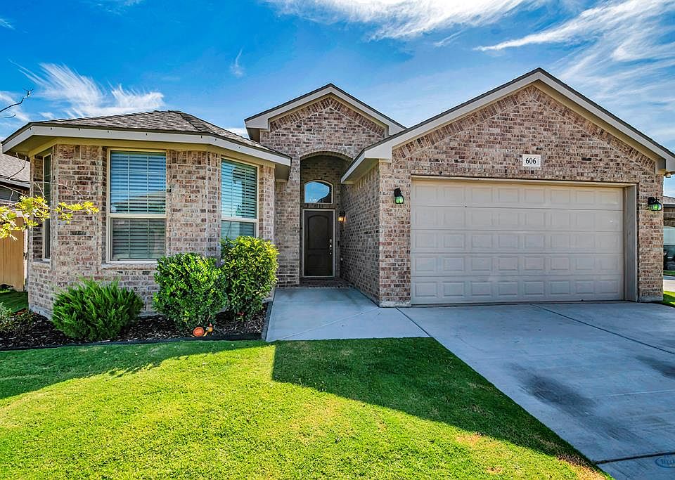 NEW PRICE ON 606 BALD EAGLE. THIS FLOOR PLAN IS 4 BDRMS & 2 BATHS. 3 BDRMS AT THE FRONT OF HOME, ONE HAVING BAY WINDOWS, AND THE LARGE SEQ. MASTER IN BACK W/SEP. SHOWER AND TUB AND WALK IN CLOSET. STEP INTO THE OPEN SPACE LIVING, DINING & KITCHEN, WHERE YOU WILL FIND THE CORNER FIREPLACE, ISLAND WITH SEATING, 20FT CEILINGS, GRANITE COUNTERS, STAINLESS STEEL APPLS, AND EAT IN KITCHEN. LGE BACKYARD HAS SHED & EXTRA CONCRETE WALK WAY TOWARDS FRONT OF HOME. MATURE LANSCAPING, LARGE CUL-DE-SAC LOCATION, ACCESS TO POOLS, PARKS, & SOCCER FIELDS! SELLER IS OFFERING A 1% CLOSING COSTS INCENTIVE.