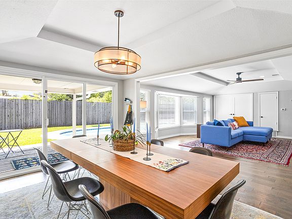 **Available with 2.75% assummable VA loan to eligible vet with own entitlement.**Step into this fully remodeled, single-story home in the heart of Central Irving, with elements of of mid-century modern style throughout. There are 3 bedrooms, 2 bathrooms, including an oversized primary suite, multiple living areas, and a backyard retreat. This turn-key home combines style, comfort, and convenience in one exceptional package. Inside, enjoy beautiful wood floors flow throughout the home, complemented by built-in bookshelves and expansive windows that fill the space with natural light. The flexible layout features three living areas and two dining rooms, providing ample room for entertaining, relaxing, or adapting to your lifestyle. The kitchen and bathrooms have been completely updated with modern finishes, blending style and function. Recent upgrades include new HVAC system, pool equipment, blinds, and a new dedicated utility room. Enjoy a private backyard oasis, complete with a sparkling pool and covered patio, perfect for summer gatherings, barbecues, or quiet evenings outdoors. Located with quick access to major highways and transportation corridors including the Airport Freeway, HWY 114 and Loop 12, making commuting across the DFW Metroplex simple. Minutes from the Toyota Music Factory, Las Colinas and many great restaurants. Built in bookshelves convey. Virtual tour available.