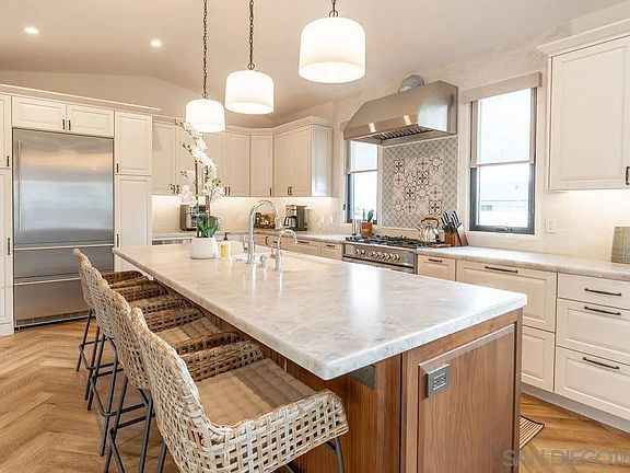 Fully furnished rental Enchanting Encinitas Oceanview Casita Enjoy coastal living in this newly built 2BR/2.5BA Spanish-style detached casita with stunning ocean views. Located in the heart of Encinitas, just 10 minutes from Moonlight Beach, shops, and dining, this sunset sanctuary blends tranquility with sophistication. Enter through a gated private driveway to hardwood floors, high ceilings, and an airy, open layout. The living room and chef's kitchen flow seamlessly, featuring stainless appliances, a large island with seating, and panoramic ocean vistas. Cozy up by the fireplace or relax on the comfortable sofa. The primary bedroom offers a queen bed with en-suite bath, dual vanity, and soaking tub; the second bedroom has a full daybed with trundle. Additional amenities include 2.5 elegantly finished bathrooms, fully paid solar, stacked washer/dryer, air conditioning, and small dogs allowed with approval. Experience the perfect combination of surf, sand, and sophisticated coastal living in Encinitas, known for its surf culture, nurseries, gardens, and iconic beaches. Maximum occupancy 5 guests. This is a furnished seasonal rental. Pricing varies by length of stay and seasonality. Published amounts are range estimates only. Final pricing, fees, and availability are subject to change until a fully executed lease agreement. Please inquire for exact quote and terms.
