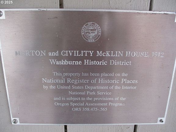 The historic "McKlin Home" in the Washburne District, built in 1912 the main level interior was updated in 1994 but retains many original features, including original fir floors, picture rail, plate rail, built-ins, wavy glass windows, an updated kitchen features granite island, newer appliances, laundry hookups, while the upstairs is the original floor plan, walk-in closets, one bedroom with a "secret door" to closet, there is a basement with 1092 sq. ft. for storage, a second laundry hookup, and exterior entrance. The home is located on a 0.18 acre corner lot with patio, pergola, covered front porch, and fenced backyard, a detached garage and tool shed. This home is a vintage gem, ready to be sparkling again.