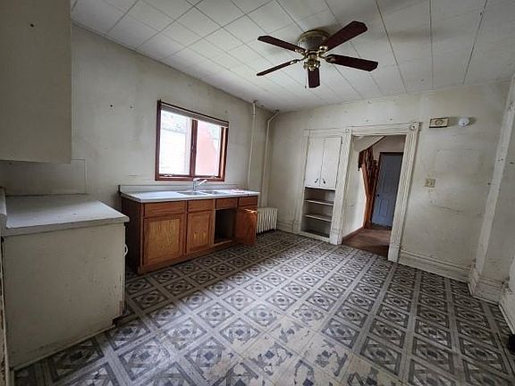 This house has an updated main floor bathroom with laundry, spacious kitchen, front Foyer, 3 bedrooms up with bathroom. New electric water heater and boiler. Water, gas & electric are on. Green yard space in the rear with a detached single car garage with side area for the lawnmower. Original woodwork can be seen in the staircase, trim and flooring. Updated 200 amp electrical panel.