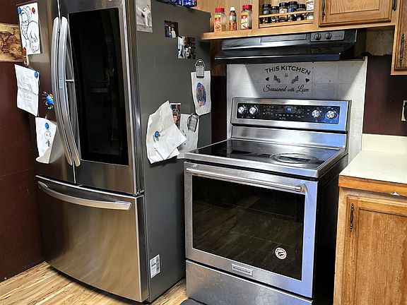 If you need space, this four bedroom home has it. 2,452 sq. ft. on the main level with 832 sq. ft. in the basement. Spacious living room with vaulted ceilings, dining room with patio doors to the deck and backyard. Kitchen with some stainless steel appliances and island for extra seating and counter space, main floor utility room with cabinets and countertop. Master bedroom and bedroom furniture, double closets and bath with 48" walk- in shower and double vanity, another updated bathroom with tub and shower and three large bedrooms, great office space with desks and file cabinets and shelves to remain. Office and large bedroom have mini-split units for heating and cooling. Partial basement with family room and rec room with egress window for possible use for bedroom if needed. Double detached garage and extra parking on the driveway. The yard is fenced with privacy and chain link fences. This home has CH and CA, Anderson replacement windows, vinyl siding and newer shingles. It`s on almost an acre and it`s almost country..