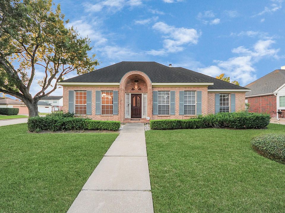 Discover an incredible opportunity in the heart of desirable Pecan Grove! This charming one-story home sits on a corner lot and features 3 bedrooms, 2.5 baths, a private study, and formal dining room. The spacious den centers around a classic fireplace, offering plenty of room to gather and entertain. The large kitchen provides endless possibilities for redesign and customization to fit your style. A split floor plan ensures privacy, with the oversized owner’s retreat featuring dual sinks, a vanity, soaking tub, separate shower, and a massive walk-in closet. Outside, enjoy a covered patio overlooking a comfortable, easy-care yard and a detached oversized garage—perfect for extra storage or a workshop. With low taxes, a low HOA, and access to Pecan Grove’s community lifestyle, this home delivers one of the best values in Fort Bend County—a blank canvas ready for your personal style and creativity to shine.