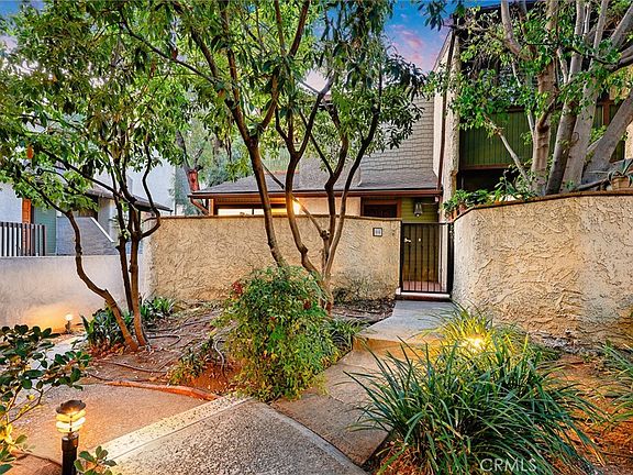 Mid-Century beauty located in the tranquil Franciscan Woods community of South Pasadena, this beautifully upgraded 3-bed, 3-bath end-unit townhome offers warmth, elegance, and a quiet sense of retreat, all tucked within a peaceful residential enclave with a private gated patio. A welcoming front patio invites you in with dappled sunlight and the rustle of mature trees, ideal for morning coffee and unwinding with your favorite book. Entering through the front door, you'll find a split-level living room where vaulted ceilings and a cozy fireplace create a light-filled, inviting space. A floor-to-ceiling sliding glass door opens to the patio for easy indoor-outdoor living. Just above, the elevated dining area features a built-in window bench with hidden storage, adding charm and function beneath a sunny window. The kitchen offers quartz countertops, custom cabinetry with glass-panel uppers, and all stainless steel appliances with upgraded LG Studio Series, including a 5-burner gas range and dishwasher, paired with a like-new InstaView fridge and NXR hood. Nearby, a converted bonus room that was once an open den now functions as a third bedroom or home office. All three bathrooms are finished with full-height tile and reinforced concrete subflooring to help prevent moisture. The lower-level bath, originally a half bath, now includes a shower. Upstairs, the Primary Suite is a peaceful retreat. Vaulted ceilings and a picture window frame the calming view of leafy treetops, bringing nature into the suite. A in-suite closet and double vanity bath complete the space. The second upstairs bedroom includes a wide-set window and its own en suite with double vanity and tub. Upgraded Milgard window frames throughout the home offer durability and energy efficiency while enhancing the clean, contemporary profile. Additional highlights include an oversized 2-car attached garage with ample storage space, fast 50-amp EV charging outlet, tankless water heater, included laundry units, ABS plumbing, and a recently replaced roof. Enjoy easy access to Garfield Park and the nearby Gold Line station. Top-rated South Pasadena schools are all just a short drive away. Trader Joe’s, Bristol Farms, Mission Street’s Farmers Market, and local cafes are all located within minutes. Caltech, Huntington Library, and Old Pasadena are also close by. This ideally located home combines comfort, natural light, and refined livability in one of Southern California’s most sought-after neighborhoods.
