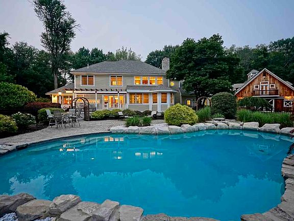 End-of-the-road privacy, less than 3 miles from downtown Portsmouth! As you meander to the back of its private drive, you’ll discover a hidden gem; a landscape blooming with flowering trees, vibrant perennials, lush lawns, split-rail fences, and a wooded backdrop…a truly peaceful setting. In the center of the property, a thoughtfully designed and lovingly maintained home with approximately 5,500 SF of finished space. The floorplan is unique, and each room has its purpose. A true 'cook's kitchen' (with SubZero refrigerator, Thermador 6-burner cooktop and center island) is the central hub, around which you’ll often find everyone gathered…from the adjacent breakfast nook and dining room to the fireplaced living room and turreted study. Loaded with amenities for summer fun and year-round entertaining, including a spa room with hot tub next to the sprawling pergola-covered deck overlooking a gunite pool and patio; multiple porches; and, attached to the 3-car garage and heated studio, a 3-bay barn where family, friends, and community members have celebrated many special occasions! The soaring upper level of the barn is perhaps its most delightful attribute, featuring a home theater and exceptional home office/bonus room with a separate entrance. Well-outfitted for those seeking unique spaces for work, play, hobbies, and collections! Convenient location near Portsmouth Regional Hospital, Route 95 and the 17-mile Seacoast Greenway trail. **Delayed showings begin on Monday 6/3/24**