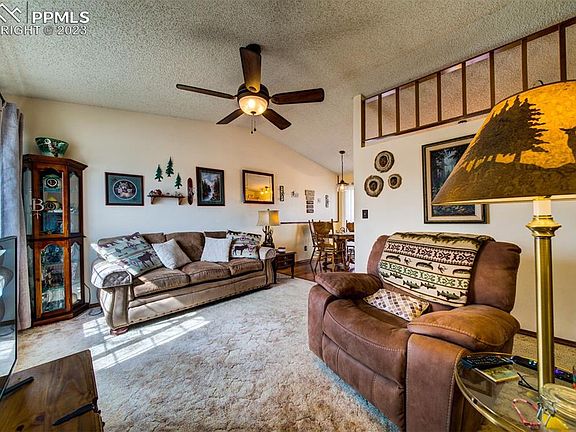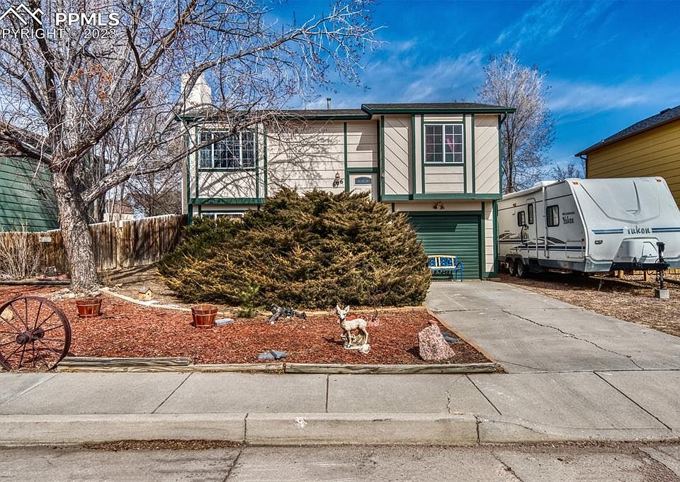 A rare find in Fountain, CO. Original owners of 37 years with pride of ownership that shows. This remarkable home comes with 3 bedrooms, 2 baths, and a 1 car garage. As you enter the home and move upstairs you will be greeted by the sizable family room with it's large window allowing natural light into the room that you can enjoy while sitting at the window seat. Exploring further, you will find the eat-in kitchen that is perfect for home cooked meals and family gatherings. From the kitchen you can walk out onto the 2nd level deck and soak in those gorgeous mountain and Pikes Peak views while enjoying your summer BBQ's. Looking down into the backyard from the 2nd level deck you will see a wood-burning firepit, garden boxes, and a huge storage shed. The upper level of this home also includes the master bedroom, full bath, and another bedroom. Moving downstairs you will discover the wonderful living room complete with a wood burning fireplace, the 3rd bedroom, half bath with attached laundry area, and a nook for a small desk. Access to the garage is also found downstairs giving you access to the ground level of the backyard. This house also includes an evaporative cooler and RV/camper parking beside the home.