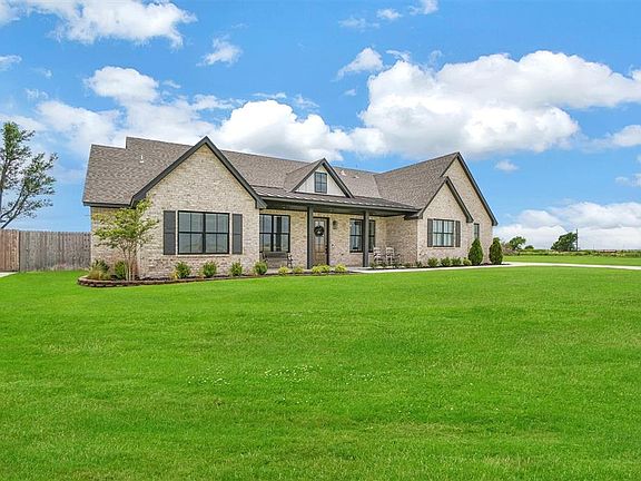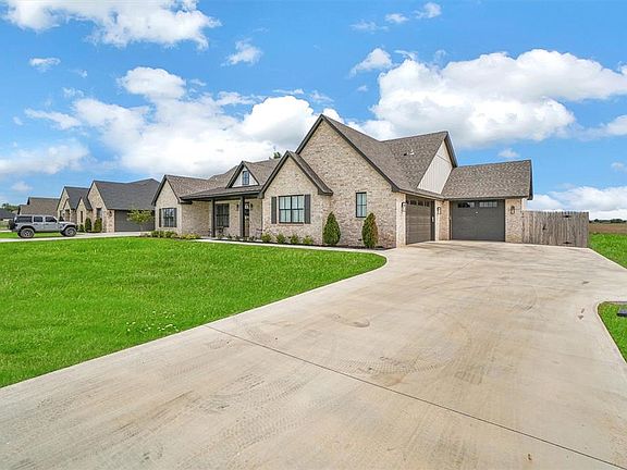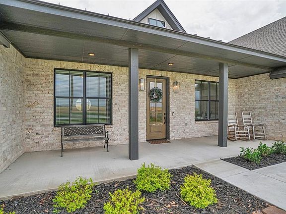 This 4 bedroom, 3 full bath custom built (2022) brick home, exquisitely nestled on the end of Heritage Rd is just the comfy, cozy home for you. The curb appeal, is one to be desired as well as the covered porch (228sq ft MOL) that faces the North leaving you protected from the direct sunlight to enjoy those mornings or evenings on. Step inside and you're immediately greeted with beautifully done flooring throughout the home, tall ceilings and uniquely, exquisite light fixtures you'll find in every room. The Dining room is off to your side as you enter the home, great for family/friend gatherings or one could use it for a study/play room, with a tray ceiling and the perfect windows, this room is at your command. Step into the great room with its vaulted ceilings, exposed beams, open floor plan, built in cabinets, beautifully built and mantle framed fireplace ( gas log ) and the perfect amount of windows to let in that natural light. The Kitchen has a gas range with hood, metroquartz counter tops, tile backsplash, matching appliances, large amounts of cabinet space, an island with storage on both sides of it, so you don't have to crawl inside to grab your air fryer...drop lights over the island and canister lights all throughout the great room. The Primary bedroom is very spacious, tray ceiling, natural light, barn door for ensuite, soaker tub, walk-in spacious shower, double vanities, large closet with back access to laundry room/mud room. The three other bedrooms are on the other side of home giving it a split floor plan. The 2nd and 3rd bathrooms have a herring bone tile pattern in the showers. The large back yard has a covered patio that has about 434sq ft (MOL) for entertaining and a privacy fenced in backyard. 3 car attached garages, the 2 car is 608(MOL) sq ft and the single attached is 308(MOL) sq ft. There are so many more features that'll you just have to come see for yourself.