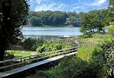 Unrivaled privacy and breathtaking waterfront beauty abound in this exceptional residence located in coveted Mead Point. Poised on over two acres of dazzling waterfront property overlooking magnificent Long Island Sound, this bright and spacious home located at the end of a long drive, offers spectacular year round views of the waterscape from all rooms. Expansive stone terraces with lovely gardens and a free-form in-ground heated pool overlook the sweeping lawns and picturesque boardwalk that leads to the dock and float. A charming circular drive and elegant stone floored foyer lead to splendid formal rooms with soaring cathedral ceilings and spectacular floor to ceiling windows which frame stunning sunsets over tranquil Indian Harbor. A sumptuous first floor master suite, and handsome mahogany-paneled library, both adorned with granite fireplaces, in addition to three-double bedrooms, an amply sized study, a sunny media/playroom, Mexican-tiled eat-in kitchen with wood burning-stove, a lovely greenhouse, laundry and utility rooms complete the modern layout. An attached garden-level two-bedroom apartment with roomy living/dining room area, well-equipped kitchenette, full bath and laundry room makes an ideal in-law, nanny suite or home office.