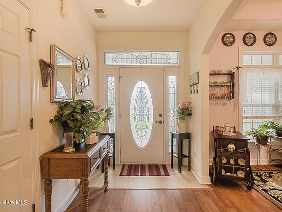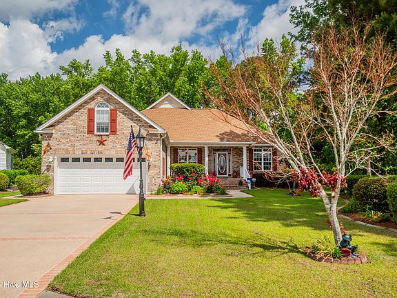 Tucked away on a quiet cul-de-sac in a prestigious gated golf community, this charming brick home offers privacy, natural beauty, and timeless comfort. Situated on a wooded lot with lush landscaping and undeniable curb appeal, you'll be welcomed by a stamped concrete driveway and an inviting front porch—just the beginning of the thoughtful touches throughout. Step inside to a light-filled interior enhanced by transom windows and a solar tubes that bring in soft natural light all day long. The living room features a cozy gas fireplace, while the adjacent Carolina room provides a sunny retreat overlooking the peaceful backyard. The eat-in kitchen is both stylish and functional, offering newer appliances, cabinet pull-outs, and plenty of space for gathering. The spacious flex room over the garage includes an en-suite half bath, making it ideal as a home office, den, or 4th bedroom. The master suite is a relaxing haven with a tray ceiling, ceiling fan, walk-in closet, and a spa-like en-suite bathroom complete with double sink vanity, soaking tub, walk-in shower, and a large picture window. Enjoy the outdoors from your covered back deck, surrounded by nature and serenity. With ceiling fans in all bedrooms, a newer roof, and a low-maintenance brick exterior, this home combines comfort, quality, and the best of community living. Homeowners in Brunswick Plantation enjoy an active social committee and resort style amenities such as: an indoor pool, hot tub, fitness center, several outdoor pools, along with tennis and pickleball courts. Close to the restaurants and shopping in Calabash, you are still only minutes to Sunset Beach and close to the attractions of Myrtle Beach