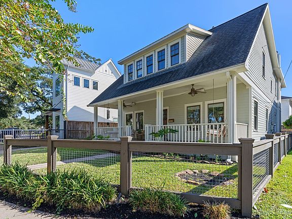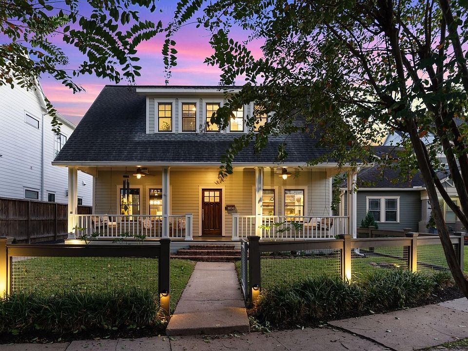 Nestled in the desirable Woodland Heights community in walking distance to Travis Elementary, this expanded & renovated 1920's home greets you w/ an expansive covered front porch. Upon entry, you will find formal dining that connects to the kitchen & a dedicated home office that could function as a 4th bedroom. The fully renovated kitchen boasts marble countertops, a spacious kitchen island, stainless steel appliances, custom inset cabinetry, a butler's pantry, & a walk-in pantry. Enjoy tons of natural light in the living area w/ floor to ceiling windows that offer views of the backyard entertaining area & pool. Upstairs, the primary suite features tray ceilings & an ensuite bathroom w/ dual sinks, walk-in shower, soaking tub, vanity area & a custom walk-in closet. In addition to 2 sizable secondary bedrooms, one w/ a private ensuite bathroom, the second floor includes a flex space, ideal for a game room, gym or another option for a 4th bedroom. Fully fenced w/ a generous front yard.