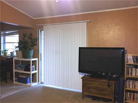 Cute 3 2 2 home on quiet street in well established neighborhood. Nice drive up appeal. Ceramic tile entry and wet areas. Large living area with vaulted ceilings and pretty ceiling fan. Kitchen is bright with many windows, 2 in blinds and ceramic tile countertops. Back yard is large with many trees. 10 ft drive through gate. Wood and vinyl fencing.
