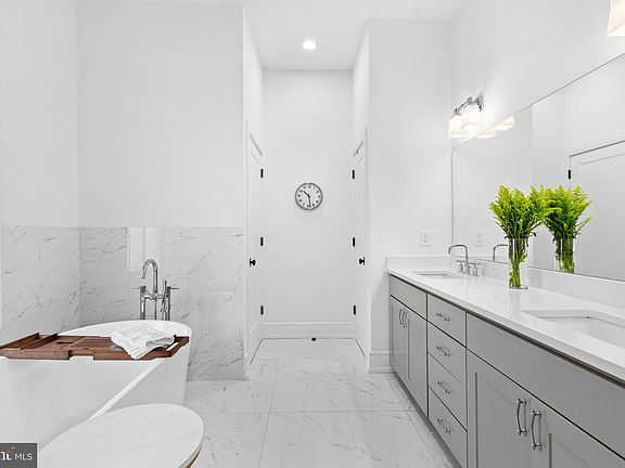 Welcome to the perfect city home, where exceptional design meets luxury in every corner. Tax abatement approved. Still many years remaining on 10-year Tax abatement. This pristine, residence offers modern vibrant city living at its finest, with four spacious bedrooms, 2 CAR GARAGE PARKING, 25 foot wide, and the added benefit of many remaining years on the tax abatement. From the grand black-and-white marble entrance, you’re greeted with sophistication and style, complemented by access to a two car garage and great built in storage for both functionality and convenience and super rare to find in the city. The basement is fully finished, has great storage, has a full bathroom, high ceilings and could be used as an office, play room, gym, extra living space or the 4th bedroom. The second floor opens up into an expansive open-concept living and dining area, designed to enhance both comfort and elegance. Enjoy the outdoors year-round on your private deck right off of the kitchen which makes hosting that mush easier. The chef’s kitchen is a showstopper, featuring quartz countertops, a breakfast bar, and Bertazzoni Italia appliances including range, vent hood, dishwasher, and refrigerator creating a perfect space for every night dinners and amazing events / holidays with family and friends . A cozy fireplace and a beautiful bay window with eastern exposure flood the space with natural light. The next level has the primary suite and offers a generous, extra-wide space, including a separate seating area by the bay window. A dedicated office area and a luxurious all-white marble bath with double sinks, a stunning shower, heated floors and a deep soaking tub add to the suite’s allure. The top floor features two well-sized bedrooms and two beautifully tiled full baths, while the additional rooftop deck provides the perfect spot to unwind and enjoy a sunset. Nestled in the vibrant heart of the Art Museum and Spring Garden neighborhoods, this home is ideally located near scenic Kelly Drive, Whole Foods Market, and offers easy access to top institutions like the University of Pennsylvania, CHOP, and Temple Hospital. Combining modern luxury with unbeatable convenience. Schedule your showing today.