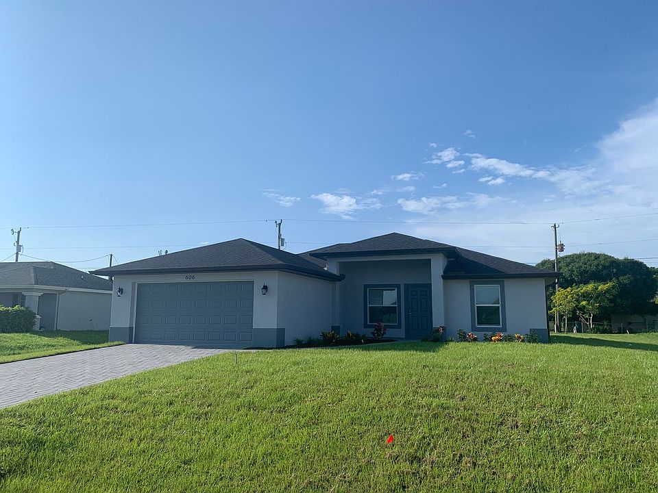 Move in by December 1, 2025, to snag our special offer on extended lease options for this stunning 1,440 sq. ft. home! It boasts soaring ceilings, an open-concept design, and upscale finishes throughout. The kitchen is a chef's dream with stainless steel appliances, stone countertops, and designer lighting. The split floor plan includes a spacious master suite for ultimate privacy. Outside, the fully fenced yard and screened lanai provide the perfect setting for relaxing or entertaining. Lawn care and water system salt are covered by the landlord, making life a little easier. Conveniently located near Del Prado Blvd, you'll have quick access to shopping, dining, parks, schools, and commuting routes. Premium living in a prime location!