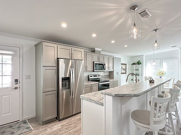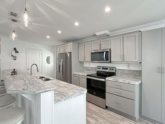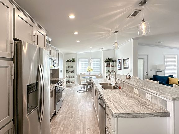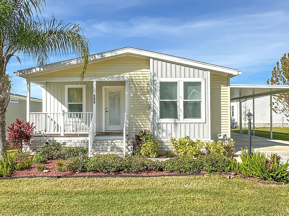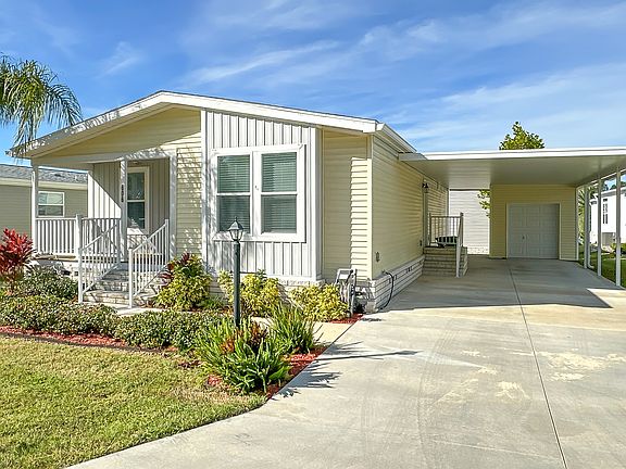 Discover this beautiful 2022 Palm Harbor double-wide home located in the desirable Water Oak Country Club Estates, offering 2 bedrooms, 2 bathrooms, and approximately 1,352 sq. ft. of comfortable living space. This home features an open floor plan with bright interiors, central A/C, a garbage disposal, an enclosed porch perfect for relaxing or entertaining year-round, and a spacious walk-in closet in the primary bedroom. With its cheerful yellow siding, quality construction, and great curb appeal, this home perfectly complements the active, resort-style lifestyle of Water Oak, where residents enjoy access to a golf course, clubhouse, pool, fitness center, and a variety of social activities. Don t miss this opportunity to own a modern, move-in-ready home in one of the area s most sought-after communities