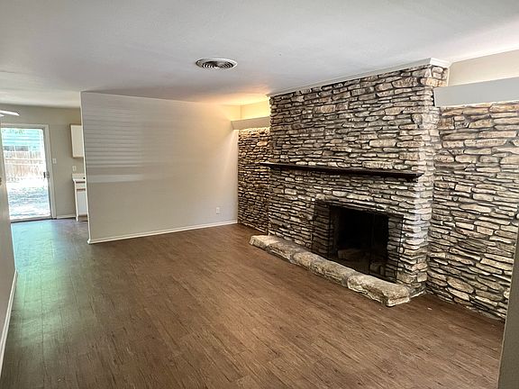2 or 3 bedrooms, 1 bath, living room with fireplace, kitchen with dining area