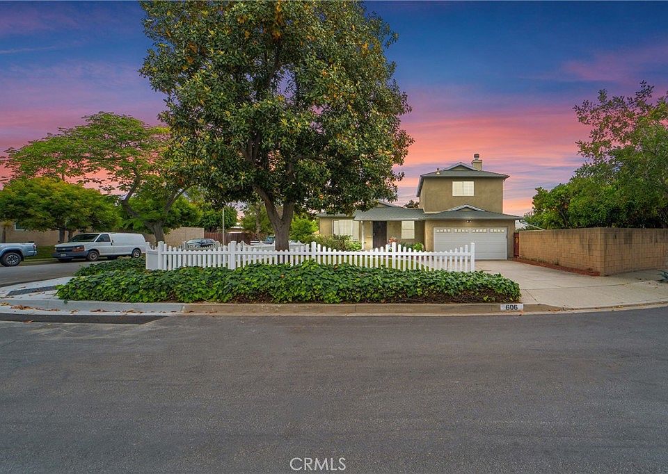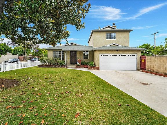 ONE OF A KIND CORNER LOT PROPERTY IN BREA! This charming home features 4 bedrooms plus a den that can be converted to a 5th bedroom, 3 full bathrooms and approximately 2,100 sf. The welcoming living room features plenty of windows that let in the natural light and is situated next to a cozy den with an original wood burning fireplace and charming accents like the stained glass and brick wall. This den has closet space and can be converted to a 5th bedroom. The galley kitchen opens to the dining area in the heart of the home. Down the hall are the 2 secondary bedrooms and full hall bath, as well as the downstairs primary. The primary bedroom features an en-suite full bathroom. Off of the kitchen is the bonus room that can be used as a family room or game room with a built-in wet bar, fireplace, garage access and direct access to the backyard. Up the stairs, is the second primary suite – secluded with its own private patio and can be easily converted to an ADU. The expansive primary bathroom features a sunken tub, walk-in shower, toilet room, and dual sink vanity. The closet is a dream! The size of a bedroom, with an additional closet inside (one for clothes, one for shoes!). Additional highlights of the home include, double primary suites, easy ADU conversion, 2 fireplaces and an expansive backyard! This home is situated on an 8,700 sf. lot with plenty of grass, a large covered patio, a large built-in spa, plus room for storage sheds on the side yard. This home has it all – you don’t want to miss this one!