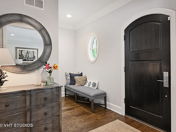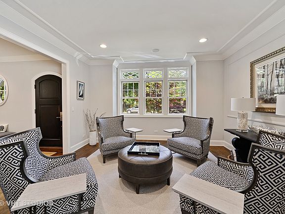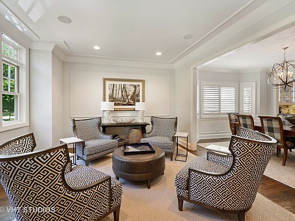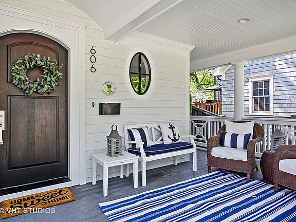 Timeless white modern home with wrap-around front porch located walking distance to train, lake, parks, & Winnetka's downtown. This beachy, like-new home was built in 2016 & designed for energy efficiency, w/ foam insulation, LED lighting, zoned heating & cooling & Hardie Board siding. Light dances through the front black windows w/ diamond grills. Ideal open layout w/ sleek finishes & beautiful custom millwork. Kitchen has high-end amenities such as Wolf, Subzero, custom white cabinets, quartz island, bulter's pantry, white subway tile backsplash, & eat in kitchen. 1st floor office with built-ins. Four bedrooms on 2nd Floor. Stunning master bed with balcony & spa-like bath w/ heated floors. Lower Level has a spacious rec room w/ fireplace & wetbar, 5th Bedroom, full bath, & exercise room. Ideal 3rd floor Sky-lit playroom/teen suite w/ a full bath. Large fully fenced in backyard w/ bluestone patio, sprinklers, generator, iron gate & 2 car garage. Mounted TVs & Sonos included.