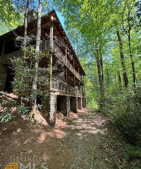 ONE OF A KIND FLY FISHERMANS RETREAT WITH 15FT WATERFALL! This custom built beautiful log cabin home has it all! Waterfalls, trout fishing, hiking trails, surrounded by natures beauty. Listen to the rushing sound of the 15 ft waterfall only a stoneas throw from the porch. Enjoy fishing in Frogtown Creek which has a healthy population of wild rainbow trout and is also stocked periodically. Swim in the large natural swimming hole below the falls, or go for a hike on the Appalachian Trail only minutes from the property. Bordered by National Forest across the creek, the 3100 sq ft, 3 BR, 3 BA cabin with finished basement has 2 large decks for relaxing and viewing nature. Master and guest BR on the main floor. Upstairs loft has a BR, full bath, and custom built-in bunks. Basement has billiards room, bar area, and another room that could be converted into a BR. The cabin sleeps 8-10 guests easily. This property also makes a great investment 2nd home for the perfect getaway. This beautiful mountain retreat is located on Blood Mtn only minutes away from the Appalachian Trail, several great fishing spots, and state parks. Only, 25 minutes north of Dahlonega, and 20-30 minutes from several of north Gaas mountain towns (Helen, Blairsville, Cleveland, Suches).