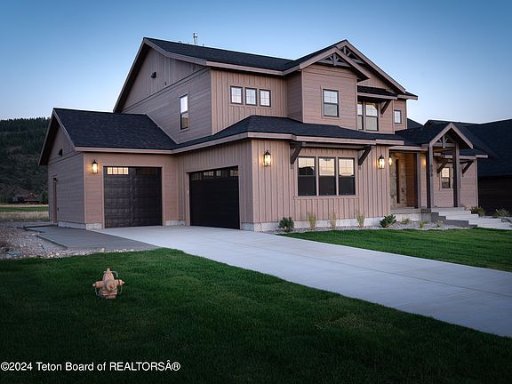 Welcome to mountain living at its finest in this stunning residence boasting dramatic ceilings that elevate the ambiance to extraordinary heights. Overlooking the wooded foothills of the Teton Range, this home offers a seamless blend of elegance and contemporary design. The living space and gourmet kitchen create a sense of sophistication, complete with hardwood floors and a dramatic open log fireplace. The luxurious primary is complete with a spa-like ensuite bath and huge closet with laundry stack hookups. Upstairs, this impressive home features an open railing loft, second laundry and 3 additional bedrooms. The unfinished basement brings an added 1,700SqFt and opportunity for additional living space, bedrooms, theatre and more. Builder incentives available, inquire with agent.