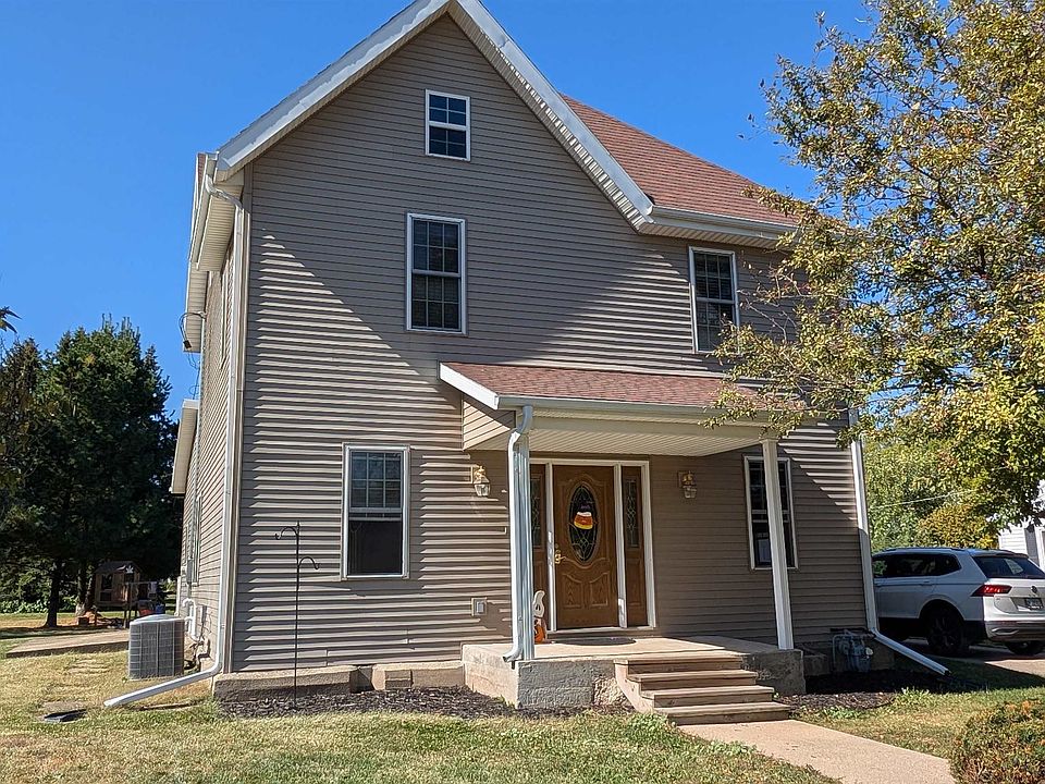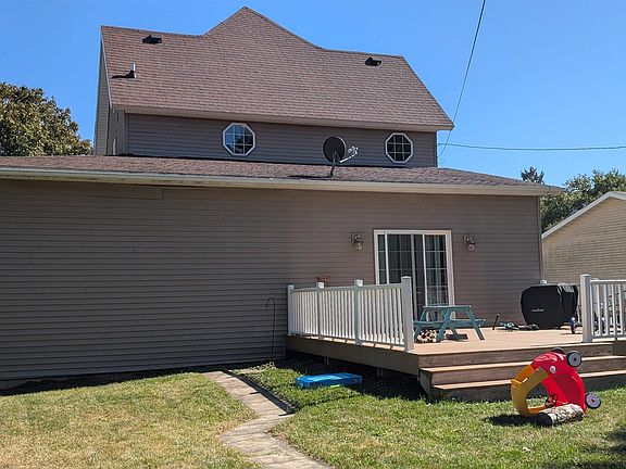 Modern and appealing, this beautifully updated home sits in a quaint country town and offers a perfect blend of comfort and style. Major renovations completed in 2016 include updated plumbing, electrical, siding, windows, roof, furnace, and central air. Since the remodel, a maintenance-free deck has been added along with new siding and a roof on the 12’ x 24’ backyard shed, plus a reverse osmosis water treatment system and water softener. The modern kitchen features an island, vaulted ceiling, sleek cabinetry, quality countertops, and updated appliances, with a sliding door leading to the spacious deck. The open floor plan offers a large living room that could easily accommodate a third bedroom with the addition of a wall. Or the walk up attic is ready to be finished. Upstairs, the impressive primary bedroom includes a 7’ x 20’ walk-in closet and an updated bath with shower, while the main-level bath is generously sized with a corner jetted tub and washer/dryer hookup. All appliances are included, making this home move-in ready and full of modern charm.