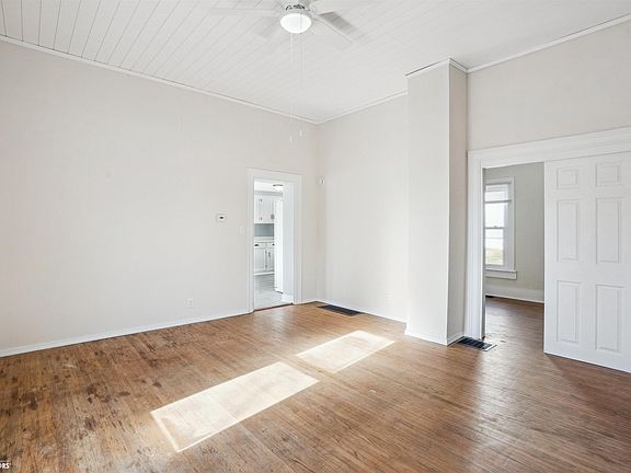Cozy home on corner lot with nice yard and large two car garage in Montezuma, IA. You're sure to love the high ship lapped ceilings and gorgeous hardwood floors in the living room. The kitchen has been given a facelift with freshly painted cabinets and new laminate flooring (appliances included). The kitchen has a nice eat-in area and laundry is conveniently located just off the kitchen. The bathroom located just off the kitchen has a brand new shower and vanity. The two bedrooms have tons of closet space with the primary bedroom including a bonus room great for a nursery, office, or possibly shared 3rd bedroom. Outside you'll enjoy the brand new deck that leads to the level back yard and nice sized 2-car garage. Another bonus is a newer metal roof! Call today to schedule a private tour.