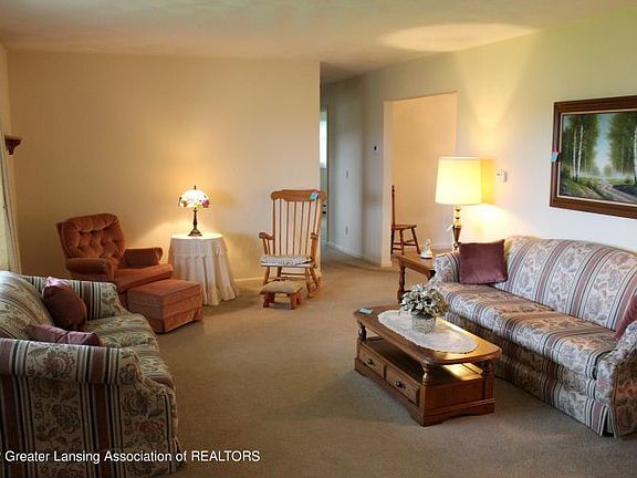 Classic 60's era brick ranch with 2 bedrooms, 1.5 baths, a first floor laundry, an attached garage, a pole barn and natural gas available, all on a paved road. This country gem sits on 3.84 acres with a beautiful lawn, mature trees and woods.