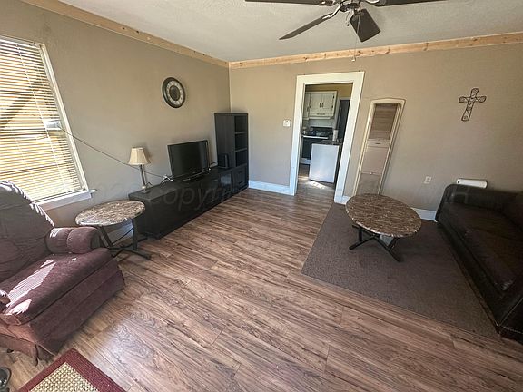 Cute as a button!!! 1 bed 1 bath, utility room, nice size living room and kitchen, newer flooring, roof replaced in '25, fenced with a double car garage that has electricity and plumbing. Sits on 3 lots. Perfect for that Lake Meredith weekend home. Plenty of space to park a boat, camper and anything else you can think of. Less than 4 miles to Lake Meredith's Harbor Bay and Fritch Fortress boat ramps. AS IS!! Must see to appreciate the potential!! Call today for more info.