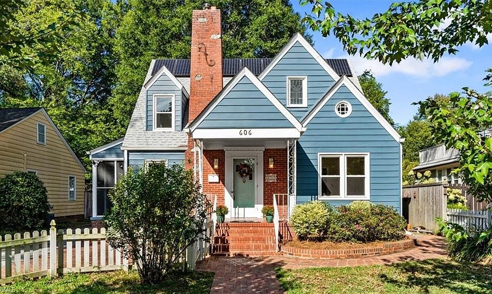 OPEN SUNDAY, OCT 12TH 2-4PM! NEW PRICE! Charming 1930s Lindley Park Cottage! This 3BR, 1.5BA home blends timeless character with modern updates which includes energy efficient Solar Panels. Other features include hardwood floors, tiled baths, fresh paint & a cozy living room w/wood-burning stove that opens to a screened porch—perfect for relaxing. The renovated kitchen offers granite countertops, tile backsplash, SS appliances & a breakfast nook. Main-level BR adds flexibility, while upstairs offers a spacious primary, 2nd BR, laundry, updated bath & storage. Enjoy Outdoor living perfect for grilling out on the deck, relaxing around the firepit area or kids enjoying the treehouse. Detached 1-car garage with power provides storage or flex space. Prime Lindley Park location with unbeatable walkability—just minutes to restaurants, parks, Friendly Center, UNCG, downtown GSO & the Greenway. Refrigerator, W&D convey, Newer windows & hot water heater, too many features/updates to mention.