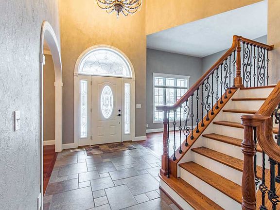 Extraordinary home w/ unique & beautiful features - ornate open staircase connects upper & lower levels, 2 mezzanine levels, gorgeous light fixtures throughout, vaulted & tray ceilings & indoor salt pool. Pool room has cedar solarium walls & skylights. Kitchen has a breakfast bar & island w/ granite counter-tops & numerous cherry cabinets. Lower level has wine cellar, wet bar, entertainment area, walkout to patio with pergola & stone fireplace. Large lighted deck extends across back. Wooded lot w/ tree house. Freshly painted-2018. New roof-2016. High efficiency heating & energy construction!
