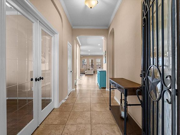 This corner lot home features a split floor plan with 4 spacious bedrooms downstairs, 2 full baths, and a game room or 5th bedroom upstairs with a half bath. The gourmet kitchen includes upgraded cabinets with pullout drawers, under-cabinet lighting, granite countertops, stainless steel appliances, and a large island perfect for eating. The home boasts high ceilings with crown molding and an open concept design, with the kitchen flowing into the dining and family rooms. Enjoy an oversized private study and a master suite with a beautiful bath, separate tub and shower, and a large walk-in closet. The covered rear patio, including a screened-in porch (2022), is ideal for entertaining. Additional features include a new AC (2023), a front sprinkler system, and a playset and basketball hoop. Don't forget to check out the VIDEO TOUR, attached!!!