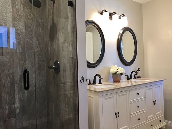 Price Reduced! Beautiful 2 story Remodeled house on corner lot. 5 Bedroom 3 bath 2,622 square foot house with all bathrooms and kitchen remodeled. Solid surface countertops, Kitchen backsplash, all new matching stainless steel Samsung Kitchen appliances included. Beautiful Engineered Hardwood flooring and new carpet in bedrooms. New trim work/baseboards, Painted throughout. New Front Landscape, new block wall. Installed new Dual Pack 2014. Two new 6500 ground mounted Master Cools. All light fixtures change to L.E.D. Workshop in back with garage door access. New insulated garage door in front. Multiple windows changed out to dual pane along with sliding glass door. All new color coat stucco on exterior with Fascia painted. Corner lot with plenty of room. 2 Car garage, Located in beautiful neighborhood at the end of cul-de-sac. Master bathroom completely redone with all new tile and barn door entry. Plenty of room for any size family. This house is beautiful from floor to ceiling. Owner Occupied. Please contact owner via phone or text message 1 hour minimum prior to showing.