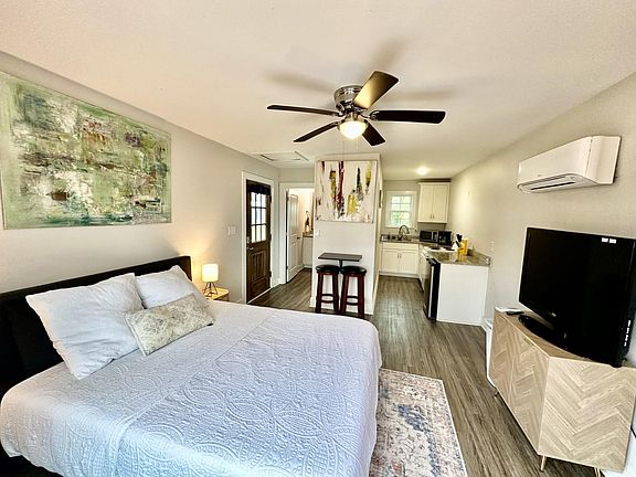 Beautiful fully FURNISHED garage apartment in the HEART of Downtown (two blocks from the Bay). You will fall in love with the newly built and gorgeous place. It's an ideal location. It's directly across from the Corinne Jones Park. Rent includes EVERYTHING. Furnishings, lawn care, pest control, internet, electric, and water.