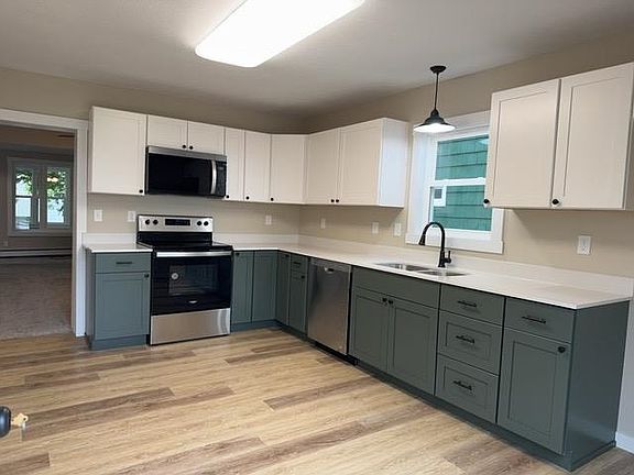 Simply stunning home! New roof, windows, siding, boiler, plumbing. Plus all new paint, new floors and an awesome kitchen with tons of space, a pantry, and new cabinets with solid surface tops! If you are looking, look here!!