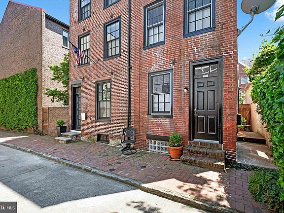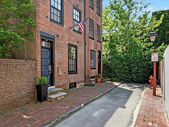 Tucked away on the only cul-de-sac in all of Society Hill lies your serene escape in the heart of the bustling city. On a secluded street just off of 6th Street between Pine and Lombard, down a charming brick sidewalk, you’ll discover a three-story light-filled pied-à-terre, freshly painted in neutral tones, ready for your enjoyment. All of the home’s current furnishings are available for purchase, making this as turnkey as it gets. With no neighbors above or below, and no car traffic permitted on the street, your new home offers unparalleled tranquility. Despite this, the prime location boasts Walk and Transit Scores of 99, and a Bike Score of 98, granting you easy access to all that Philadelphia has to offer, and simply cannot be beat. You’ll be steps away from Washington Square Park, Center City, historical monuments, the waterfront, the 9th Street Italian market, and so much more. It’s easy to see why walkscore.com labels the location as a “paradise”. The original home dates to 1835 and features a classic all-original brick exterior. The original entrance to the home on Waverly Street has been preserved on the façade, and a new entrance has been added on the side of the home to improve functionality and facilitate efficient use of space. As you enter the home, you will find the living room, featuring soaring 9 ½’ ceilings, warm hardwood flooring, and heaps of natural light pouring in from windows on the front and side of the home. Ascend the stairs to the trinity’s second level, where you will find a combination kitchen/dining area, also with hardwood flooring. The kitchen features warm wood cabinetry, quartz countertops and stainless-steel appliances. The fold-away table is perfect for a meal for two, and simply disappears down the wall when not needed, while the folding chairs can conveniently be stored alongside the refrigerator to maximize the space. Completing this level is the home’s bathroom, showcasing clean white subway tile on the walls and white penny tile on the floors, creating an air of modern elegance. Ascend the stairs to the home’s top level to find a bright and airy bedroom, highlighted by multiple windows, a skylight, and a new ceiling fan/light combo. The space is grounded by more warm hardwood flooring throughout. Storage abounds with a deep closet and built-in drawer units. Additional storage is available in the unfinished basement, which also includes a private washer and dryer—no more trips to the laundromat or shared laundry areas! With NO capital contribution, monthly association dues, or pet restrictions, be ready to fall in love with your new home.