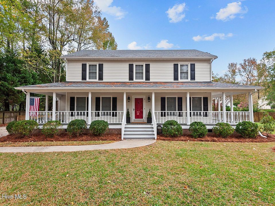This lovely two-story, 3-bedroom home combines classic charm with modern comfort. Its standout features include a welcoming wrap-around front porch perfect for relaxing evenings, a bold red front door that adds character, and a spacious yard with mature landscaping. Situated in a quiet street in Westhaven, this property offers an ideal blend of tranquility and convenience. Upon entry, you will find a formal dining room and stylish home office. Spacious kitchen boasts ample counter space and cabinetry, updated appliances and walk in pantry. The kitchen is open to both the breakfast nook and living room. A lovely fireplace is a cozy focal point. The living room opens to an oversized deck which looks out over a fenced back yard with darling storage shed. Upstairs you will find the primary bedroom with ensuite bath and walk in closet. Two additional bedrooms and full bath round out the upstairs. With its curb appeal and cozy ambiance, it's ready to be your dream home!