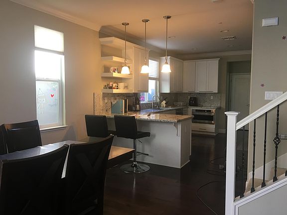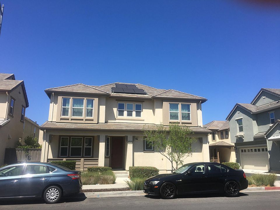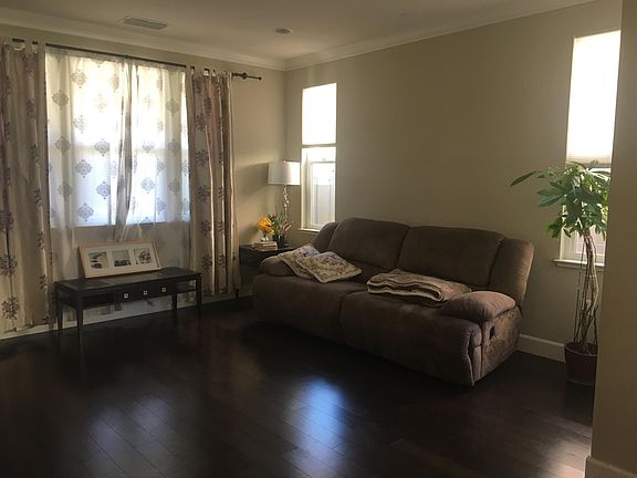 The house 2 stories with 3 bedrooms on the 2nd floor; open living room, dining and kitchen, two-car garage (Pre-wired for EV Charger) and small yard on the ground. The master bedroom is spacious for a king bed, master bathroom with two sinks, walk-in shower, and a tub. Two smaller bedrooms for either a queen bed or a single bed. They share a separate, second bathroom with a double-sink and a tub shower. The house has modern furnishings and appliances, including heating/air conditioning and washer and dryer. Facing south orientation, it's bathing in sun and light all day. Built in 2015 in a convenient location, walking distance to Costco, Safeway, Target and restaurants. The house is part of a HOA with a club house and pool plus easy access to Highway 85, the light rail station and Kaiser Santa Teresa.