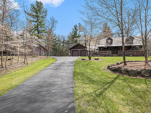 Amazing 3 Bedroom 3 1/2 Bath Log Home on 3.77 Acres. Primary suite with Private Bath, Sitting area in the loft, Open Living Room with an impressive Fieldstone fireplace. Recently added on Family Room surrounded in windows to enjoy the backyard and surrounding woods. Lots of wildlife to keep you entertained. Partially finished basement with full bath and lots of storage area. 36 x 48 insulated pole building.