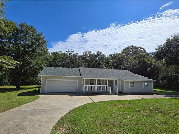 Lots of NEW: HVAC, ROOF, SEPTIC tank, very pretty TILE finishes and hard surface COUNTERS, CABINETS, country SINK, interior & exterior PAINT, DECK, garage door, PLUMBING& ELECTRICAL fixtures, most WINDOWS, dusk-to-dawn LIGHTS, and stainless steel electric RANGE, MICROWAVE, and DISHWASHER in this amazing like new over 1800 SF home with 3 bedrooms, 2 beautiful baths, and CONCRETE circular DRIVE sits on approximately 1.25 ACRES. Home was completely REMODELED in 2022-2023 by previous owner and has been beautifully maintained by current owner. Enjoy your mornings and evenings from your front porch and from spacious back deck overlooking the WOODED areas around property. Home is CONVENIENT to Hwy 98 and to churches, schools, shopping, and dining. Home offers SPACIOUS dining and living areas, roomy inside laundry / mudroom, and attached garage. Definitely not one to miss. [Dates and new items, per seller] Seller is not warranting exterior light on north side of home. Refrigerator, washer, & dryer can be negotiable, as well as some furnishings.