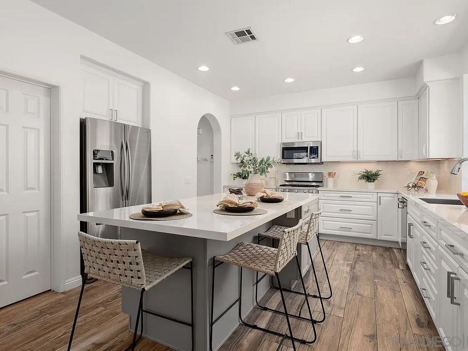 Beautifully upgraded home towards the end of the cul-de-sac in the sought-after neighborhood of Rancho Carrillo! The recently remodeled chef’s kitchen boasts porcelain counters, a new sink and faucet, stainless steel appliances, an oversized island with seating, ample cabinets, and a walk-in pantry. Fresh paint brings a light and airy atmosphere to the living and dining areas. Open concept family room with in-ceiling surround sound and patio access is perfect for entertaining! The lower half bath and laundry room feature newer tile flooring. The pool-sized backyard includes a large stamped concrete patio, turf grass, and flood lighting for evening entertaining. All 4 bedrooms are upstairs, including the primary suite with walk-in closet and spa-like bath with dual sinks, vanity area, jet bathtub and shower. New carpeting on stairs & three of the bedrooms, and additional privacy with a tint on the primary bedroom windows & other back facing windows. Additional modern conveniences include a whole-house fan, central A/C, ring doorbell, and water softener. A two-car attached garage with hanging storage and workshop bench completes this stunning property. Located in a fantastic neighborhood close to shopping, dining, and great beaches! Rancho Carrillo Swim Center includes a swimming pool, spa, picnic areas, and clubhouse with kitchen, plus HOA includes RV/boat storage area. TOP RATED SCHOOL DISTRICT!