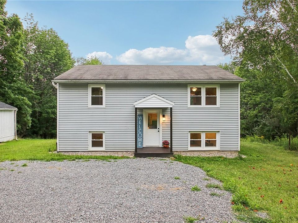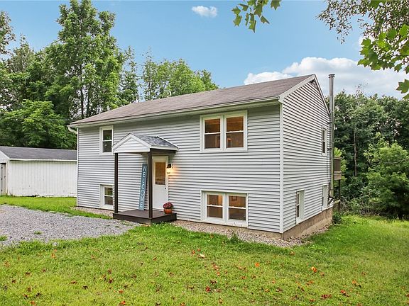 Beautifully remodeled raised ranch offering 1,586 sq ft of living space with 3 bedrooms and 2 full baths. Nestled on a private, wooded drive in Conesus, this home has been fully updated inside and out. The main level features new vinyl plank flooring throughout, and fully renovated bathrooms and a dedicated space ready for a woodstove or gas fireplace. Extensive upgrades include all new vinyl double-hung replacement windows, new baseboard heat and thermostats, new hot water tank, PEX water lines, updated electrical devices and fixtures, and a new sump pump and expansion tank. Exterior improvements include new drain tile around the home and a fresh gravel driveway. This move-in ready property combines modern finishes with a private, wooded setting — a truly turn-key home in a desirable location. Seller is also a licensed real estate agent