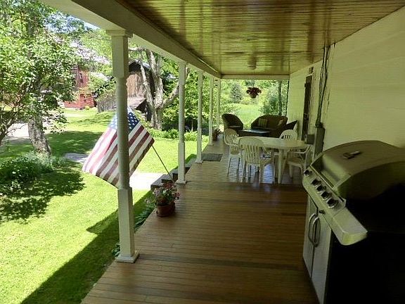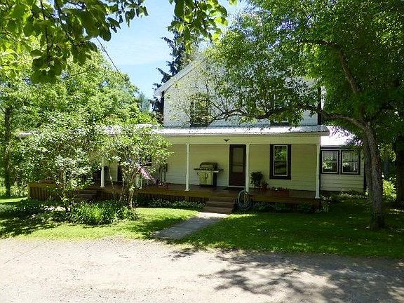 Character & location best describe this 5 bedroom 1900's farmhouse & 2.5 hours from the GWB spells desirability to the weekend warrior. The rocking chair porch draws you in the minute you drive up to this serene haven of the Catskills. 98.10 acres ensures your privacy. Wildlife abounds all over this setting, from deer giving birth in the high grass to eagles fishing right out of the 3 acre crystal clear spring fed pond. The stocked trout stream is just a stone's throw off the spacious rear deck. Out buildings include a 3 story barn with a traditional hay mau, sap house, detached garage, potting shed & 2 story carriage house. Inside you will delight in original cherry cabinets harvested from the property & milled on the premises, open floor plan, exposed barn wood & beams + original pine floors. The Old General Store does double duty as a bonus storage & workshop. Tongue & groove vaulted ceiling adorns the sun room + 2 wood stoves keeps it cozy & fancy mudroom boasts a blue stone entry.