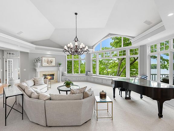 Beautiful Landschute-built home privately sited on an acre offering panoramic views over 170’ of Christmas Lake shoreline! Enjoy the open flowing floorplan showcasing west-facing water views with breathtaking sunsets; spacious great room with wall of windows; gourmet kitchen with walk-in pantry and dining area with access to the lakeside deck! The main-level primary suite features a fireplace, private deck, en suite (heated floor) and 2 walk-in closets! Walkout lower-level designed for entertaining with doors that open to the stone patio, creating the perfect blend of indoor + outdoor living! Additional features: two offices; media room area + wet bar, expansive storage space and boat house for additional storage at water’s edge! Heated 3-car garage. Tranquil setting surrounded by soaring mature trees. Highly sought-after Minnetonka School District!