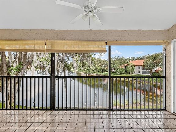 Gorgeous views from this beautiful 2/2 in Stuart's premier 55+ community of Montego Cove! You will love relaxing on the screened porch overlooking the lake & will enjoy the peaceful view from your covered balcony. The home has vaulted ceilings, & spacious living areas including an eat-in kitchen w/ a large pantry & laundry closet. The master suite has 2 walk-in closets & a bathroom with a tub/shower combo. A walk-in shower graces the guest bath adjacent to the charming guest bedroom. A 10'x7' walled patio is on the ground floor w/ a small storage room perfect for your outdoor living including a grill, bike storage & your plants! Montego Cove residents enjoy over 50 acres of beautifully landscaped grounds w/ many mature trees, 2 lakes, 2 pools, a clubhouse, tennis & pickleball courts. Completely walled & gated, the community is perfect for walking & biking. Located close to restaurants, shopping, & a library. Only a short drive to charming, historic downtown Stuart & to the beaches.
