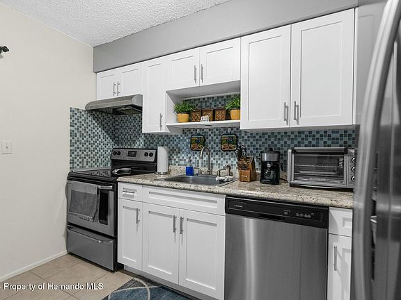 AFFORDABLE WELL-MAINTAINED HOME!! ***NEW ROOF NOV 2024 with warranty!!*** 2 bedrooms + 2 bathrooms + 1 car garage + large open great room + REMOLDED spacious eat-in kitchen with room for a breakfast table...and with newer stainless steel appliances!! Recently painted exterior!! 1022 square feet of living space + an extra air conditioned room being used now as a dining room (16 x 10) adds and extra 160 square feet of air-conditioned space in the home...use this room for anything you need! 1,634 square feet total! Home sits up from the neighbors! large fenced backyard! All the common spaces and bathrooms have large ceramic tile flooring! Home is spacious feeling and comfortable! Master bedroom has large walk-in closet and ensuite bathroom with walk-in shower! Second bathroom has updated vanity/countertop and offers a shower/tub combo. Great location...close to everything! Minutes from Cortez(Hwy 50)/Mariner shopping, movies, restaurants, hospital, schools! 15 minutes to the sunsets at Pine Island, kayak the clear Weeki Wachee River.