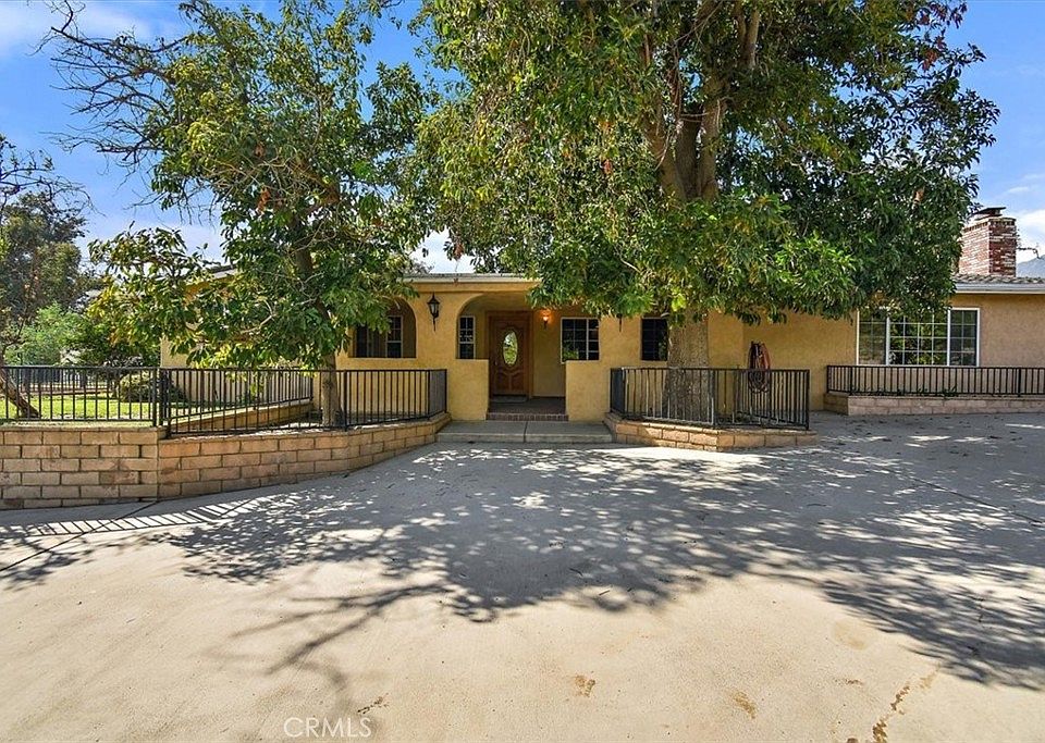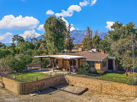 Don't miss your opportunity to own this one-story 4-bed/3-bath home in the highly desirable Etiwanda school district. It is nestled on a private cul-de-sac with gorgeous views. Situated on a 1/2 acre with an automatic gated entry this secluded home on a flat lot has room for all your toys. Gorgeous fruit trees line the front of the yard with a cemented driveway leading to a detached garage. The home also includes a carport, a large work area, gated garden areas, sheds, and a large storage container. The front of the home includes a large covered porch area where you can sit and enjoy the day. The interior of the home is spacious and just needs your own personal touch. It has two large primary bedrooms with ensuite bathrooms, one with its own fireplace, and a heavy-duty safe. Both lead to an enclosed sunroom. With two additional bedrooms, a large bathroom, and a private laundry area, this home has plenty of space for all your needs. Rounding out this amazing home is a spacious living room. a large kitchen with lots of storage and slide-out shelving, and a huge dining room that leads out to a gorgeous patio perfect for get-togethers. This home is a must-see.