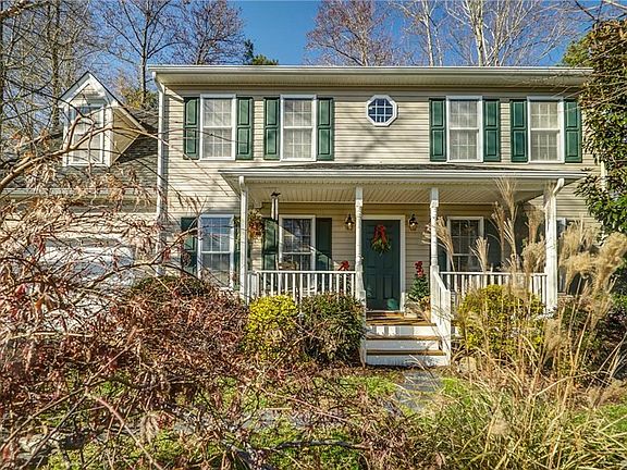 This charming two story with an inviting full front porch is ready for its next chapter! A paved driveway greets you providing parking and access to the attached garage. The entry foyer is equipped with a coat closet and provides a transition space to a home you will love! A spacious carpeted family room offers two ceiling fans and French door access to the screened porch. The eat-in kitchen boasts a vaulted ceiling over the dining area and access to the rear staircase. All kitchen appliances stay and this space also features skylights and a pantry! There's a formal dining room too that is carpeted and accented with chair railing and crown molding. Laundry room with cabinets. Upstairs, you'll find the master suite complete with a walk-in closet (with organizer) and a full master bath. Three other bedrooms and a full hall bath are on this level including one bedroom with a view to the dining area below that would also make a great office. The heat pumps have been replaced in recent years. The back yard is picket fenced and in the front yard you'll find, as ornaments, enormous rocks that were excavated from the lot during construction. Walking distance from Manchester High School.