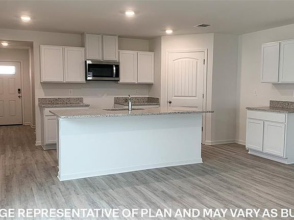 This four-bedroom, two-bathroom, two-car garage home is l for anyone. The open-concept floor plan allows you to easily move between the living room, dining room, and kitchen, making it great for entertaining guests or spending time with family. The kitchen features stainless steel equipment, a large island, and ample counter space. The spacious master suite, which is by the kitchen, boasts a walk-in closet and an en suite. The remaining two bedrooms have walk-in closets and share the use of the second bathroom. The home also comes with a nice-sized patio with plenty of space for entertaining
