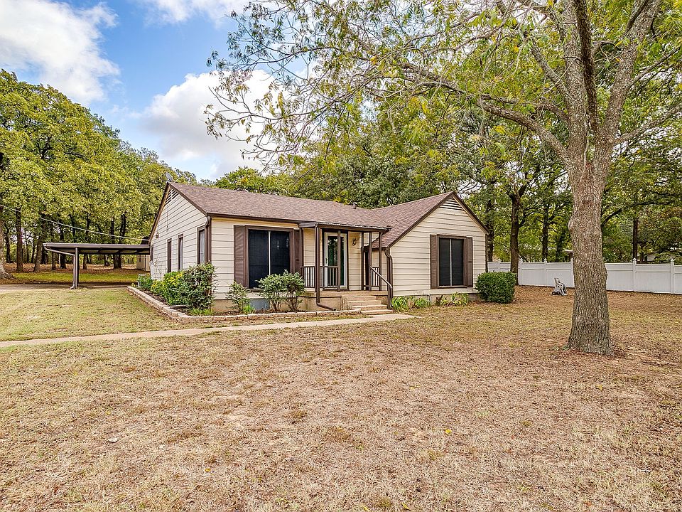 Pride ownership evident in this home. Located in MANSFIELD ISD on 1.15 acres. This quiet serene street offers the slow down of country living just minutes aways from city amenities. The best of both worlds. The layout offers opportunity for re-design and making it your own. Currently 2 bedroom, 1 bath with 2 large living spaces, dining room and eat in kitchen. Kitchen has crisp white cabinets, double ovens, dishwasher and breakfast area. Outside fall in love with the tranquility that is your backyard. Abundance of Oak trees, space and privacy. There is currently a storage building with a loft.