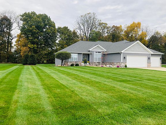 Welcome to this beautiful home located in the Schoolcraft community school district, Woodbrook Estates. Meticulously maintained, open floor plan living. The entry and great room provide and abundance of light and 10ft ceilings! Featuring a gas/log fireplace, eat in kitchen with granite countertops and stainless steel appliances. Main floor master with walk in closet and spacious master bath with jetted tub and separate shower. Two additional bedrooms along with additional full bath and a half bath off the 3 car garage complete the main level. Lower level includes approx. 500 additional finished square feet and allows more to be finished. The beautifully landscaped yard overlooks the Olde Mill golf course(9th hole). Convenient location close to schools, shopping and library.